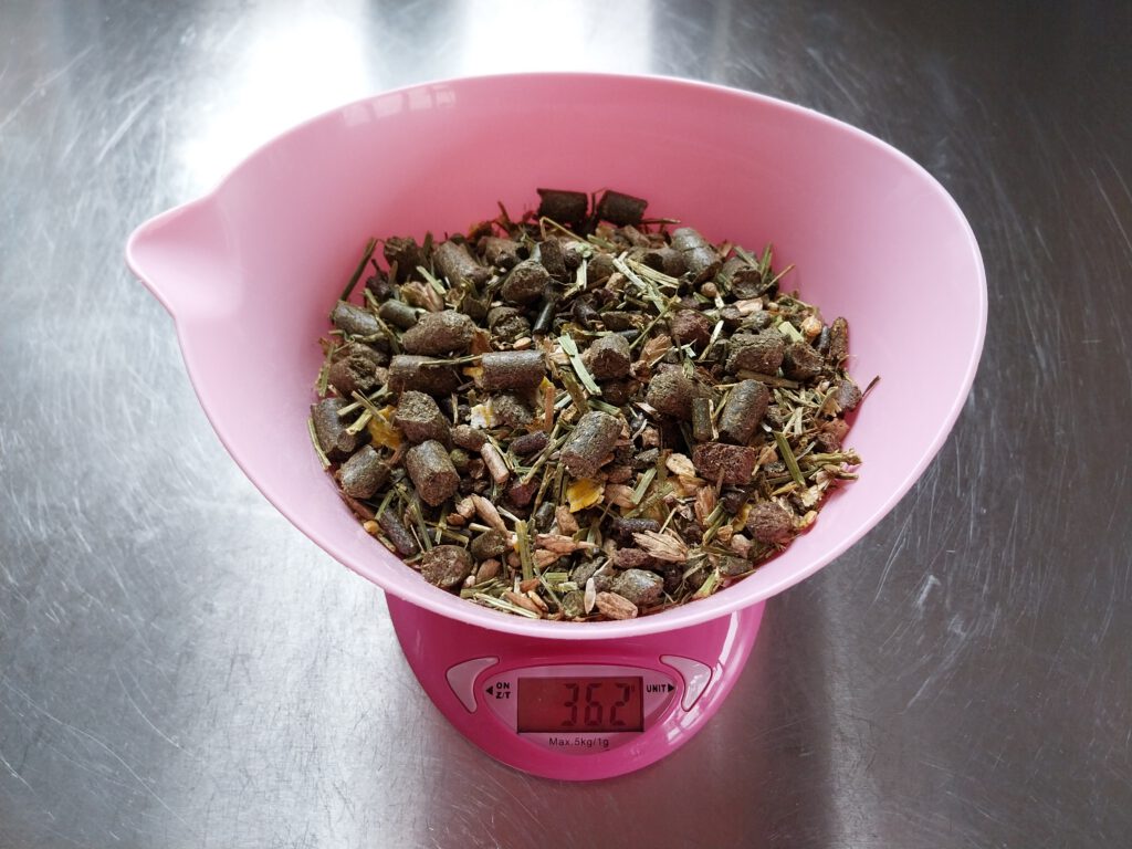 Tenzij de reisafstand te tijdrovend is kom ik bij voorkeur bij jou op stal om jouw paard, jouw ruwvoer en jouw situatie te beoordelen. Ik ga van jou vragen om alles wat je paard in 24 uur op eet te wegen zodat ik weet hoeveel (kilo)gram jouw paard van welk voerdermiddel binnen krijgt. Voor ruwvoer waar geen analyse van is of bij weidegang zal ik zelf een inschatting maken.